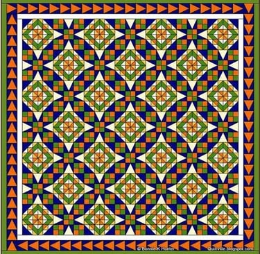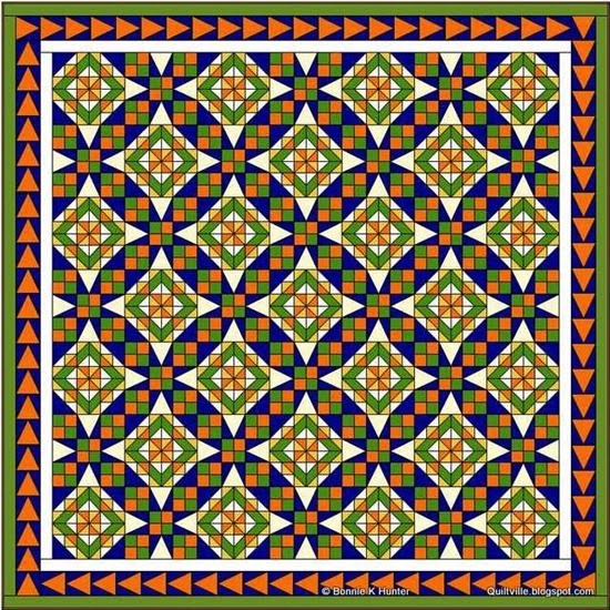 The final design excluded the outer pieced border. I didn’t fancy it and didn’t know anything about quilt borders. At the time - to me - the quilt was complete without the border.