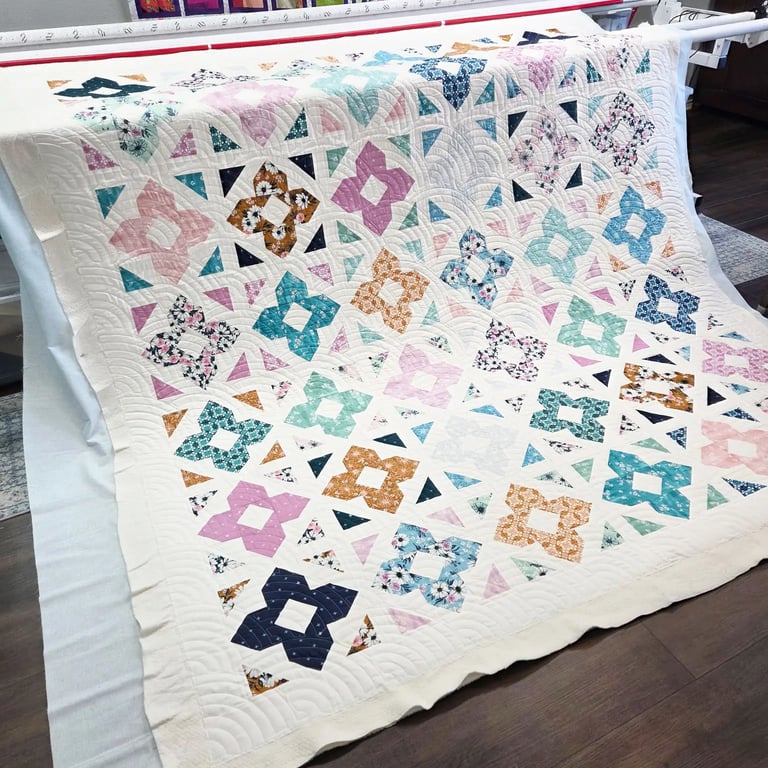 Mel Stucker offers quality longarm quilting and binding services. She can also build a quilt for you from start to finish.
